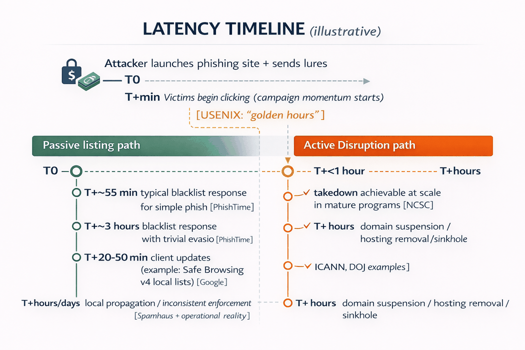 Beating latency: why disruption outperforms abuse-list updates in the “golden hours”